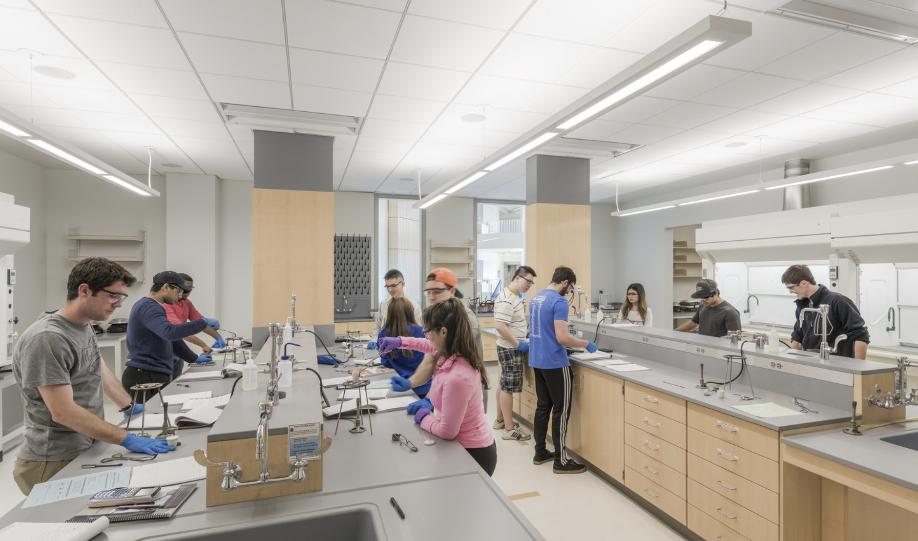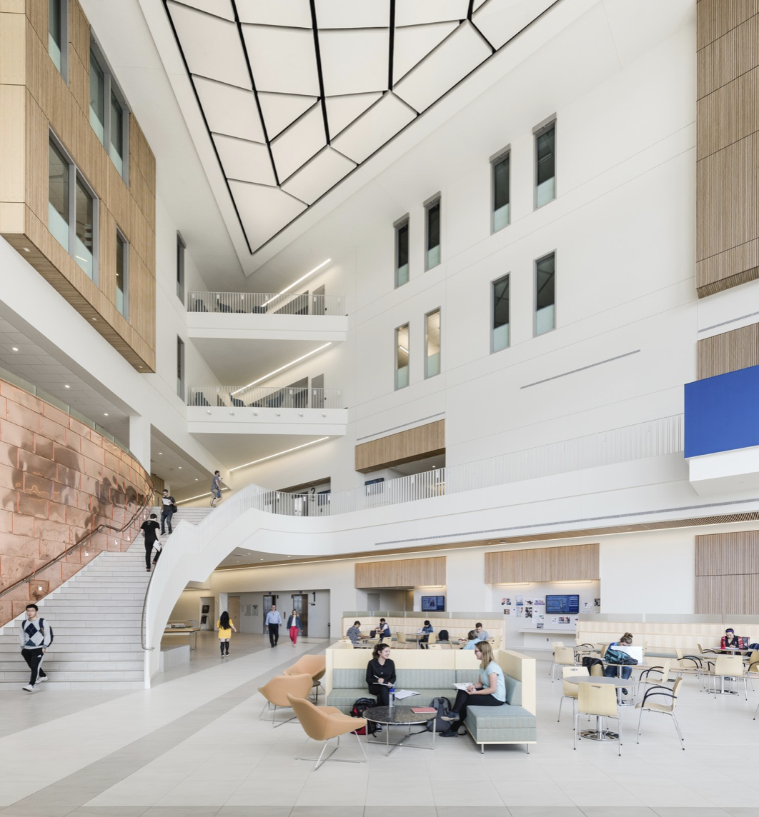 University Hall is the academic centerpiece of the UMass Boston campus, designed to champion interdisciplinary learning. It intentionally integrates the Art, Performing Arts, and Chemistry departments alongside general-purpose classrooms under a single roof. This unique blend of arts and sciences reinforces the university’s commitment to STEAM (Science, Technology, Engineering, Art, and Math) education, fostering visibility, interaction, and collaboration across diverse disciplines.