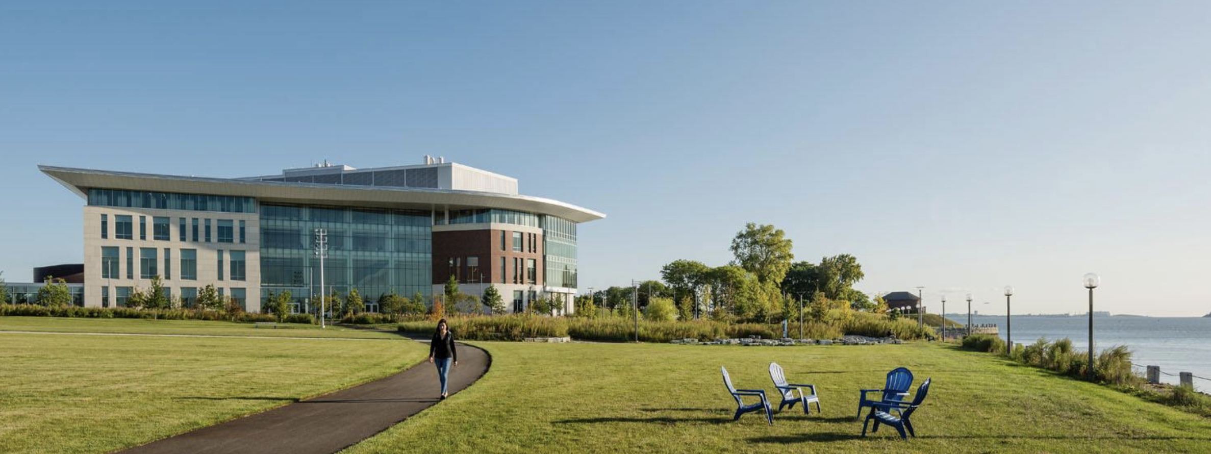 Connecting these functions is the striking central atrium, which offers spectacular views of Boston Harbor and acts as a major circulation hub for the campus. Built with state-of-the-art sustainable design strategies, University Hall is an inclusive, forward-thinking environment that serves all UMass Boston students and the broader community.