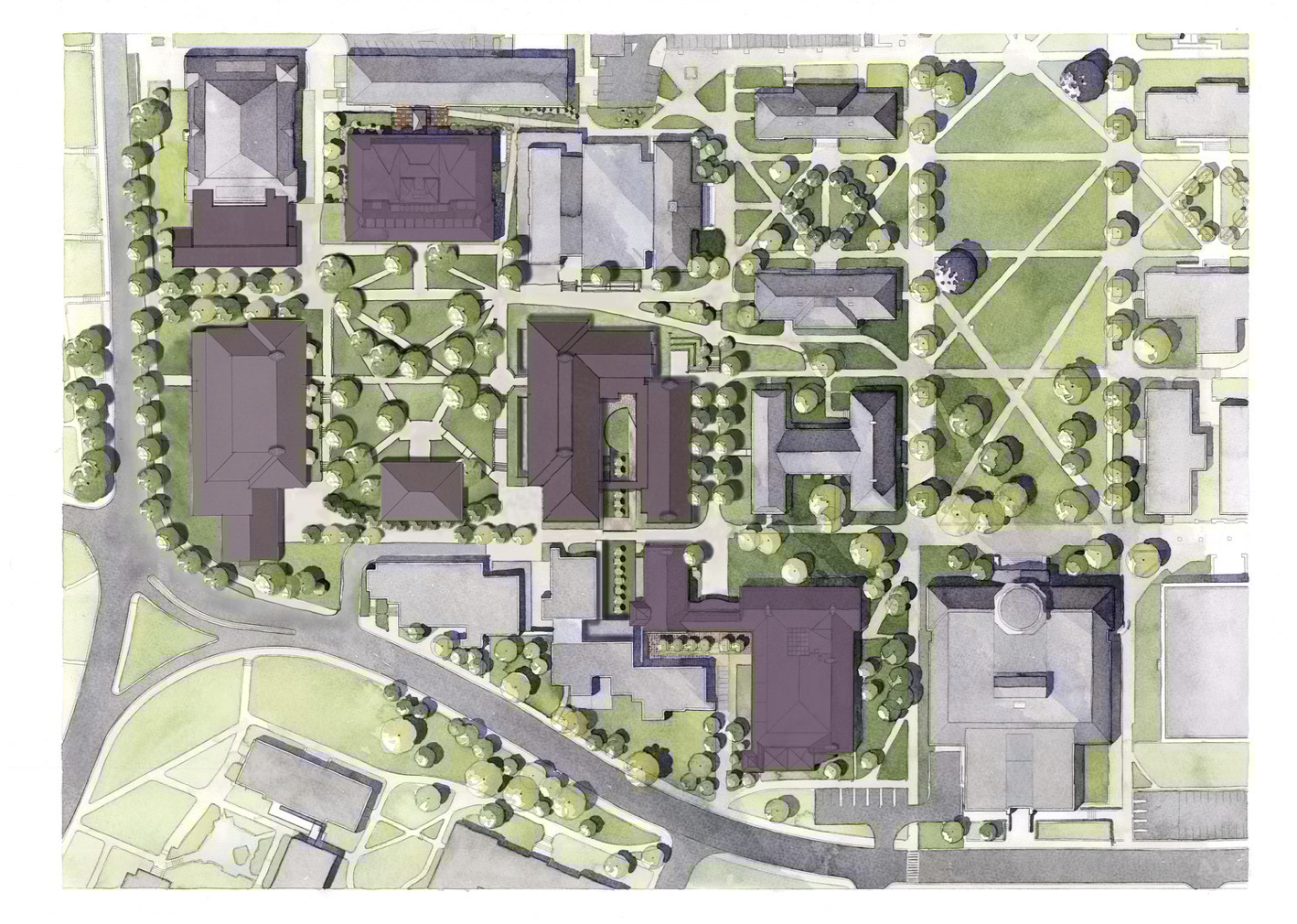 Despite the need for densification, Chancellor Anna Wu challenged the design team to maintain a sense of openness to enhance the campus’s bucolic feel. The resulting complex achieves this balance by organizing a network of linked, hierarchical, and axial open spaces around the central Murray Quad. This approach successfully doubled the amount of usable space while creating a cohesive, enhanced campus environment.