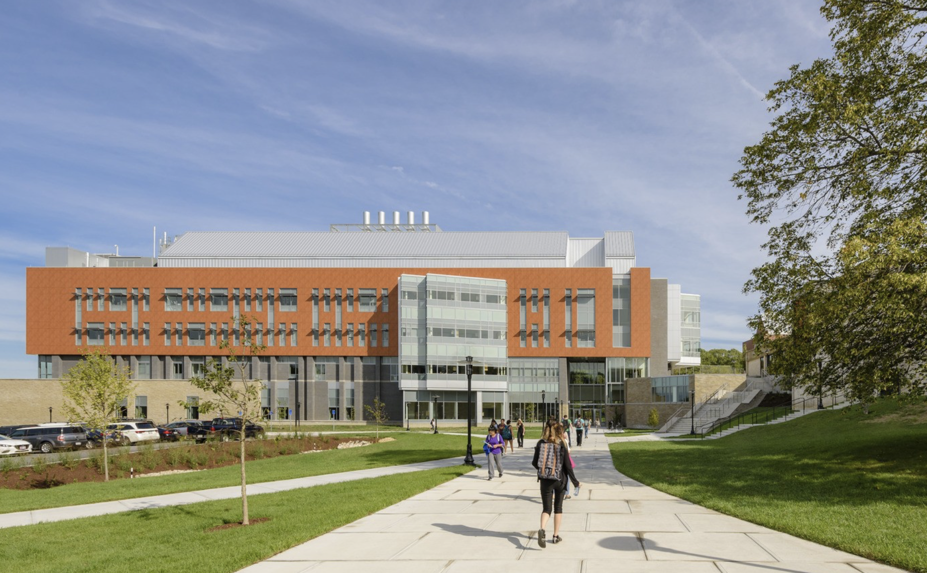This four-story structure completes the new Health & Life Science District on the northern edge of URI’s Kingston campus, drastically boosting the university’s capacity. Compared to the former Pastore Hall, the CCFS offers triple the space for teaching labs and nearly double the capacity for research labs. This expansion is essential for supporting the more than 7,000 students who enroll in chemistry courses each year.